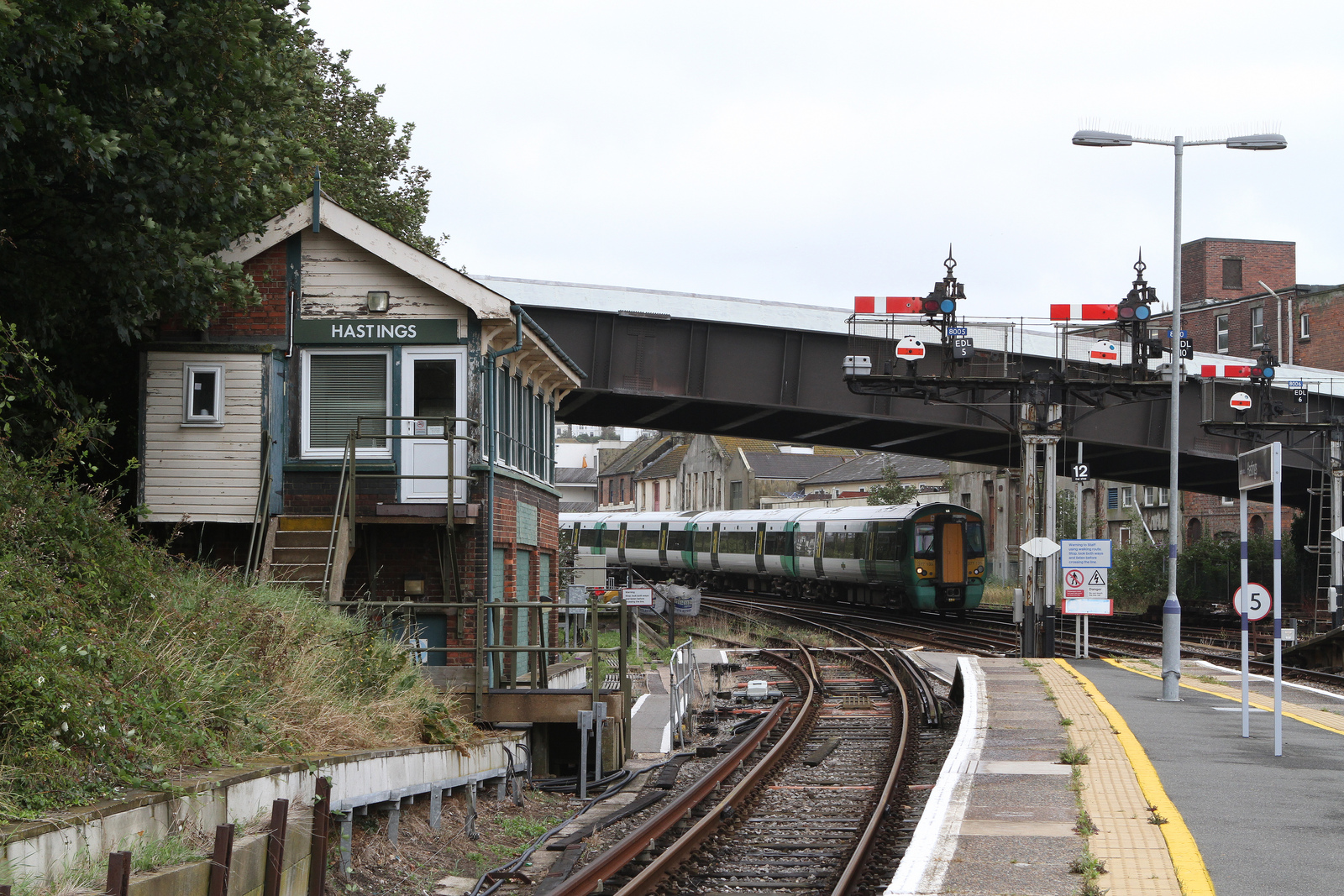 Hastings-Station-with-signalbox-geograph-3261133-by-Martin-Addison Published 13 February 2014 at 1600 × 1067 in Hastings-Station-with-signalbox-geograph-3261133-by-Martin-Addison Hastings Signalbox with semaphone signals Continue reading → © Copyright Martin Addison and licensed for reuse under this Creative Commons Licence Main photo page at http://www.geograph.org.uk/photo/3261133, where the latest information for the photo will be available.