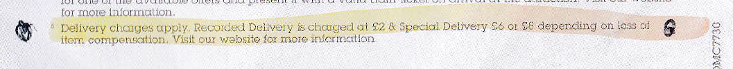 On the other hand the compensation offered by Special Delivery (£500 for the £6 fee, £2500 for the £8 fee) is of little use to Southeastern annual season purchasers outside the London area – the compensation would not cover the ticket cost! It is hard to see why Southeastern could not cover the risk of loss in transit themselves – the validity of the season is tied to the photocard number entered as part of the purchase, and they could simply send replacement tickets if the originals failed to arrive quickly.